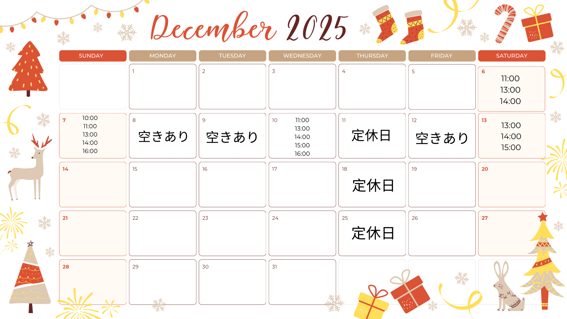 こちらが直近の空き状況となっておりますので洗車などお考えでしたらお問い合わせ下さいませ!